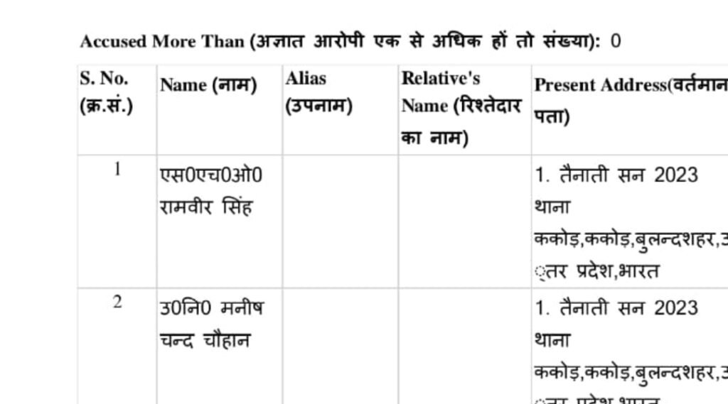 बुलंदशहर: ककोड़ थाने में तैनात रहे तत्कालीन थाना प्रभारी रामवीर सिंह समेत पांच पुलिसकर्मियों के खिलाफ मामले में जिला अदालत के आदेश पर FIR दर्ज की गई है। इन पर आरोप है कि इन्होंने आर्म्स एक्ट के तहत नामजद अपराधी बिट्टू की जगह एक दिव्यांग व्यक्ति सुनील कुमार को जेल भेज दिया। FIR में तत्कालीन SHO रामवीर सिंह, दरोगा मनीष चंद, कांस्टेबल लोकेंद्र, कांस्टेबल पंकज और होमगार्ड प्रमोद का नाम शामिल है।