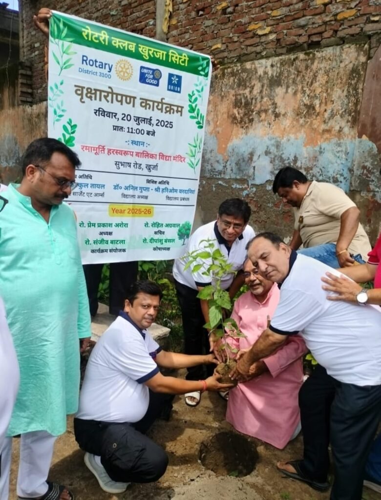 खुर्जा: रोटरी क्लब सिटी द्वारा सुभाष मार्ग स्थित रामामूर्ति हरस्वरूप बालिका विद्या मंदिर में पौधारोपण और पर्यावरण संरक्षण पर गोष्ठी का आयोजन किया गया। मुख्य अतिथि वरिष्ठ रोटेरियन डॉ. बाकुल तायल ने पौधों के संरक्षण पर जोर देते हुए अधिक से अधिक वृक्षारोपण की अपील की।