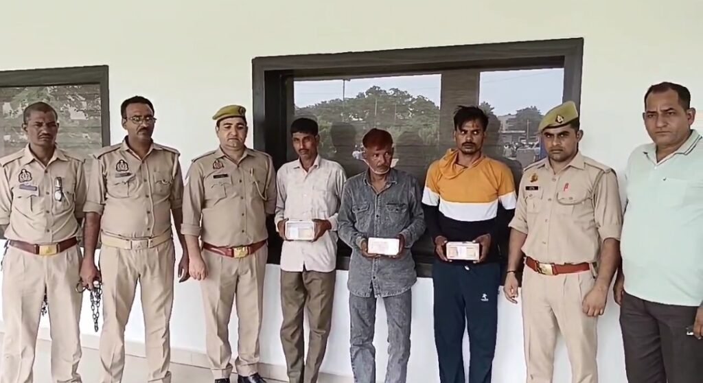 बुलंदशहर: नरौरा में पुलिस ने नकली नोटों के रैकेट का पर्दाफाश किया है। स्वाट टीम देहात और नरौरा पुलिस की संयुक्त कार्रवाई में तीन शातिर बदमाशों रहबर, यावर और अनीस को गिरफ्तार किया गया। ये सभी बदायूं के रहने वाले हैं। सभी देहाती इलाकों में भोले-भाले लोगों को निशाना बनाकर नकली करेंसी चलाते थे।