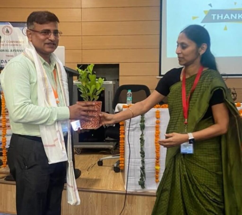कॉन्फ्रेंस का मुख्य विषय “आयुर्वेद बायोलॉजी और वन हेल्थ” रहा, जिसने आयुर्वेद के वैज्ञानिक दृष्टिकोण और समग्र स्वास्थ्य की अवधारणा को रेखांकित किया।इस अवसर पर नगर के क्षारसूत्र एवं पंचकर्म चिकित्सा विशेषज्ञ वैद्य हितेश कौशिक को उनके उत्कृष्ट योगदान के लिए सम्मानित किया गया। वैद्य कौशिक ने कॉन्फ्रेंस में “आयुर्वेद बायोलॉजी और वन हेल्थ” विषय पर एक प्रेरक और ज्ञानवर्धक व्याख्यान प्रस्तुत किया, जिसे उपस्थित विद्वानों और श्रोताओं ने खूब सराहा।
