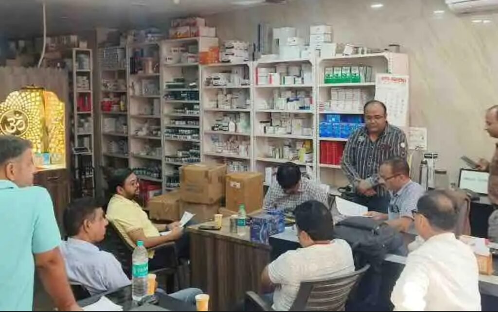 जांच करते ड्रग विभाग के अफसर, फ़ोटो