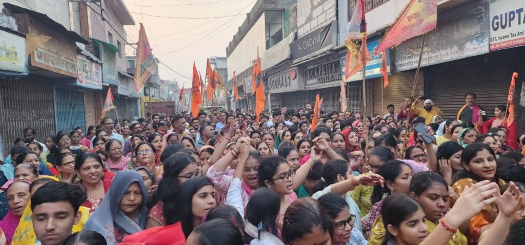 प्रभात फेरी भटनी वाले मन्दिर से शुरु होकर दरबार बैंड वाली गली, मौहल्ला पुख्ता बाजार, बिजली घर रोड, रामा गंज होते हुए पुरानी मंडी स्थित शिव मंदिर पर जाकर सम्पन्न हुई। कार्यक्रम में विक्की गोयल, सुमित गोयल, नीरव शर्मा, शिवम सोनी, मोनू गर्ग, पीयूष गर्ग आदि ने हरिनाम सकीर्तन और सुंदर सुंदर भजनों से सभी भक्तों को झूमने पर विवश कर दिया। इस दौरान जगह जगह नगर के लोगों ने पुष्पवर्षा की और प्रसाद भी वितरित किया। आयोजक मंडल ने बताया कि नगर में यह तीसरी प्रभात संगीतमयी प्रभात निकाली गई है, जिसमें सैकड़ों की तादाद में भक्त शामिल हो रहे हैं। अगली फेरी 26 अक्टूबर को बिजली घर चौराहे स्थित श्री सिद्धेश्वर मन्दिर से शुरु होकर टीचर्स कॉलोनी और सरदार गंज होते हुए नन्ना गिरी मन्दिर पर जाकर संपन्न होगी। आयोजक मंडल ने समस्त नगरवासियों से इस प्रभात फेरी में शामिल होने का निवेदन किया है। कार्यक्रम को सफल बनाने में डॉ देवेंद्र गर्ग, डॉ अरुणा गर्ग, नवीन बंसल, रामौतार तायल, रवि कौशिक, अमन चौहान, नीरव शर्मा, अंकुर बंसल, अंकुर अग्रवाल, नंदन गोयल, अशोक शर्मा, बुद्धप्रकाश बंसल, प्रियंक गोयल, सरिता शर्मा, मनोज गुप्ता, रौनक बंसल, राजीव अग्रवाल, विजय गुप्ता, सतीशचन्द सिंघल, संजय बंसल, दीपक गोयल, मोहित गोयल, डॉ सन्तोष गुप्ता, नीरज जिंदल, सुमित वार्ष्णेय, पवन, सौरभ अग्रवाल आदि रहे।