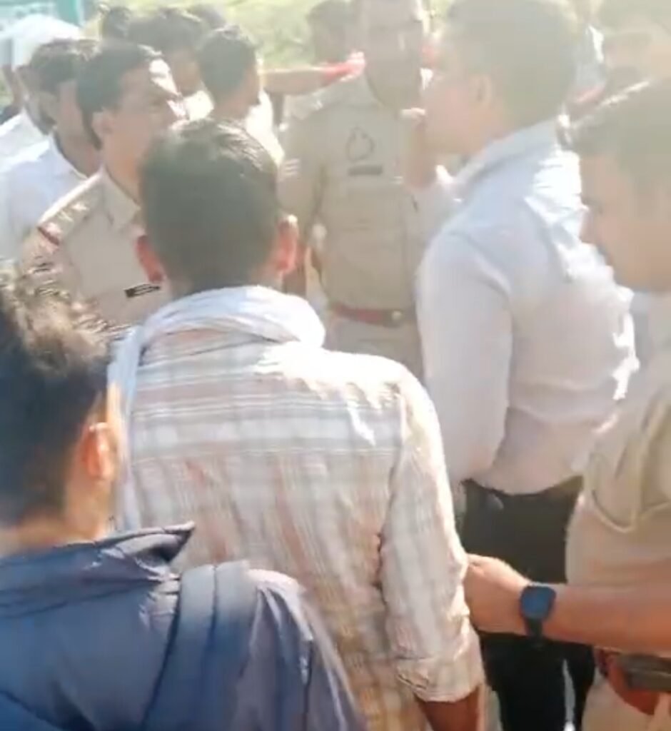 जाम लगाने वाले ग्रामीणों को समझाते पुलिस अधिकारी, वीडियो देखें
