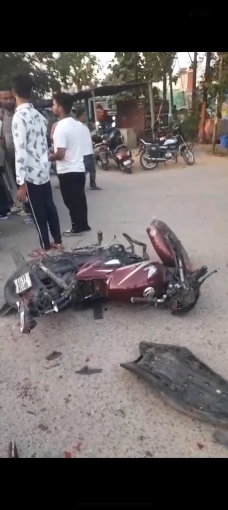 मौके पर बुरी तरह क्षतिग्रस्त बाइक(वीडियो)