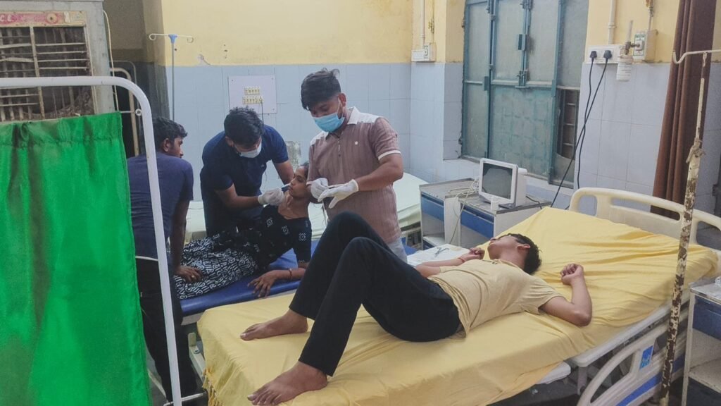 दोनों को इलाज के लिए ले जाते लोग