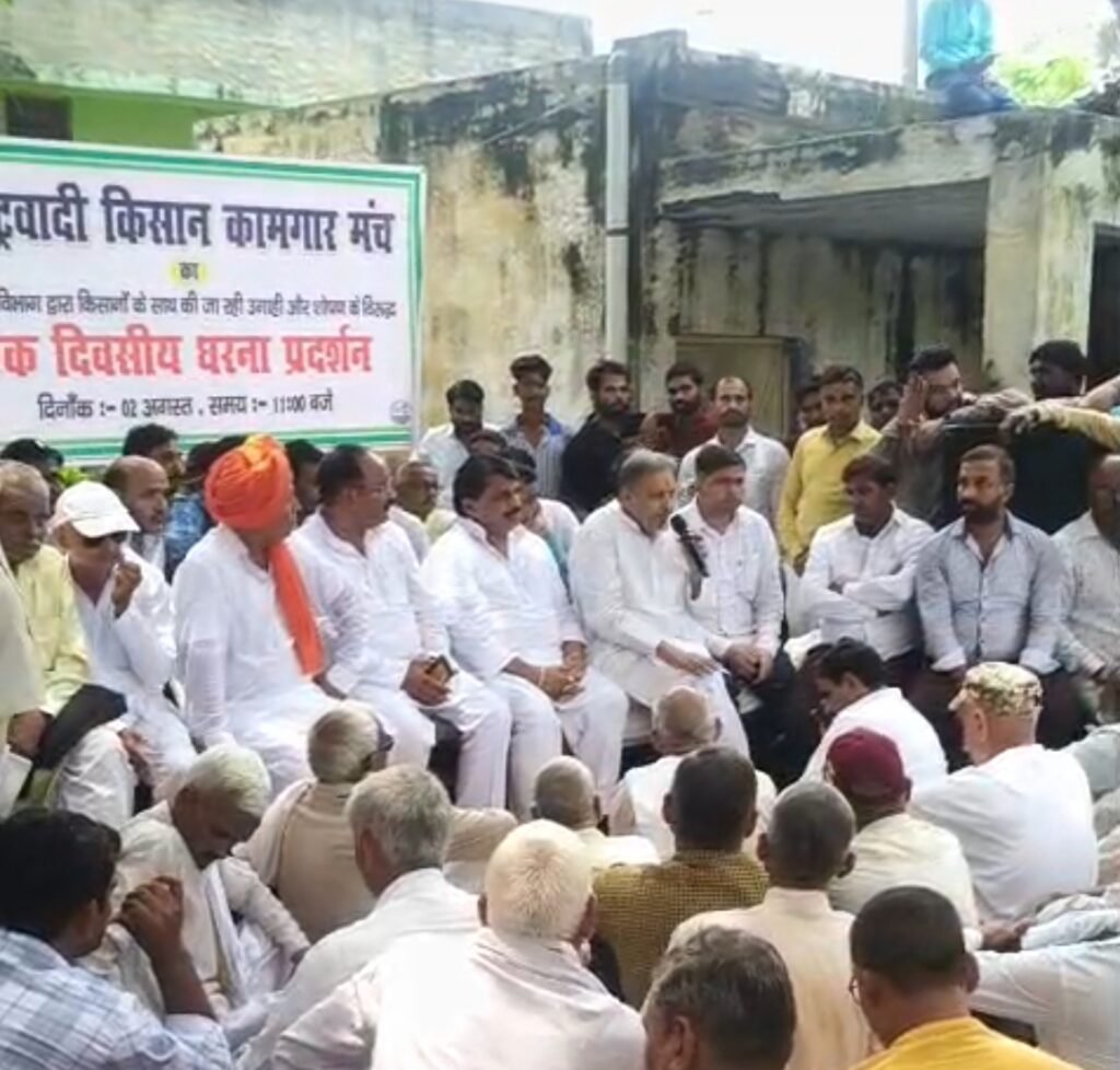 धरना देते शिकारपुर विधायक अनिल शर्मा, वीडियो