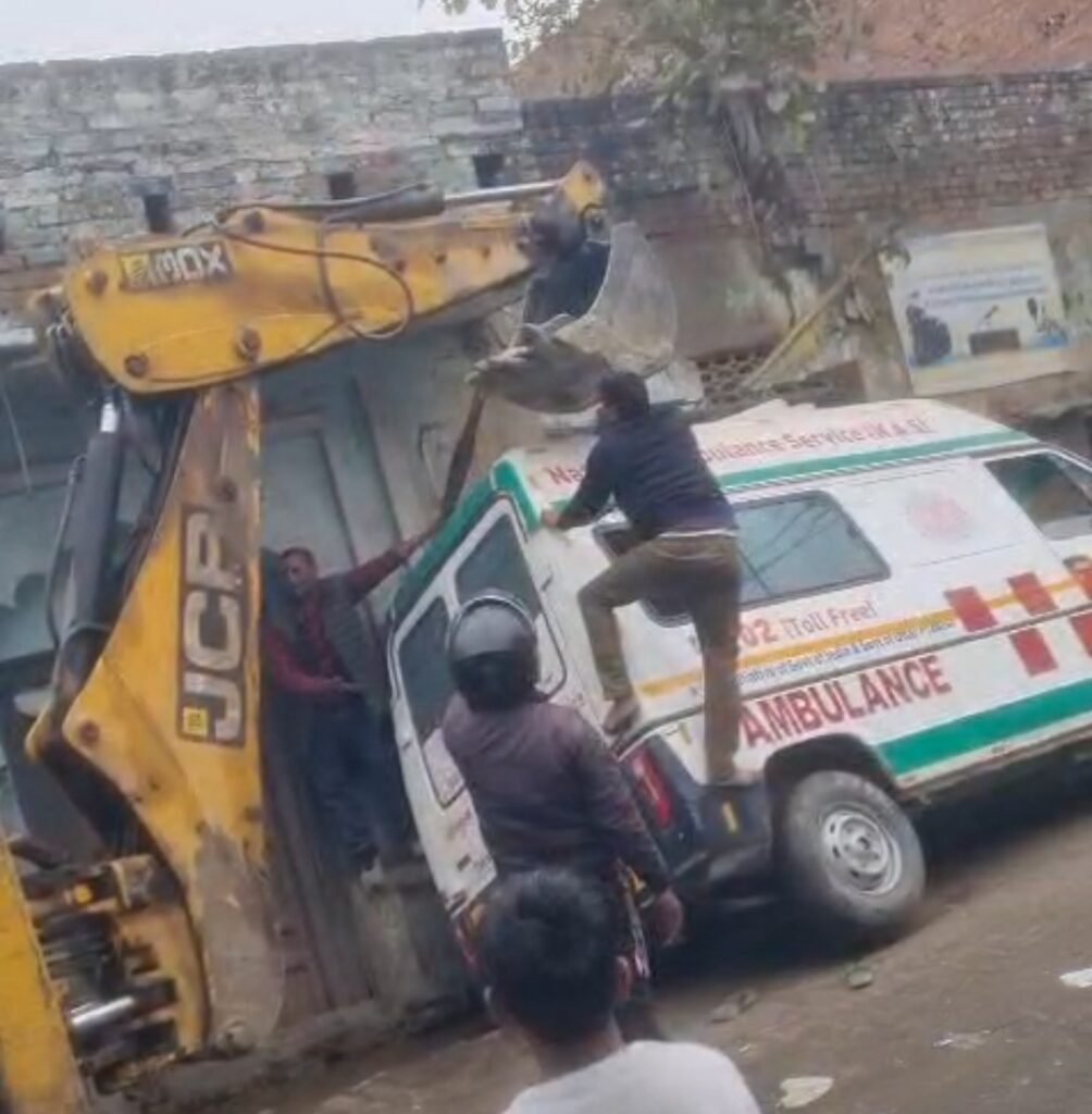 बुलंदशहर: सिकंदराबाद में महकमों की बड़ी लापरवाही सामने आई है। मोहल्ला छासियावाड़ा में बाबा मोबाइल प्वाइंट के पास एक खुले नाले में एम्बुलेंस फंस गई, जिसका वीडियो सोशल मीडिया पर तेजी से वायरल हो रहा है। वीडियो में साफ दिख रहा है कि एम्बुलेंस गहरे खुले नाले में फंस गई है और स्थानीय लोग तथा राहगीर जेसीबी मशीन की मदद से इसे बाहर निकालने की कड़ी मशक्कत कर रहे हैं। लोग रस्सियां बांधकर और जेसीबी से खींचकर एम्बुलेंस को निकालने का प्रयास करते नजर आ रहे हैं।