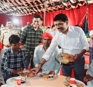बुलंदशहर: कांवड़ यात्रा-2025 के शांतिपूर्ण और सफल समापन के उपलक्ष्य में वरिष्ठ पुलिस अधीक्षक दिनेश कुमार सिंह ने थाना कोतवाली नगर परिसर में एक भव्य “बड़ा खाना” (भोज) का आयोजन किया। इस खास अवसर पर समस्त पुलिस परिवार ने एक साथ भोजन का आनंद लिया और आपसी भाईचारे को मजबूत किया।
