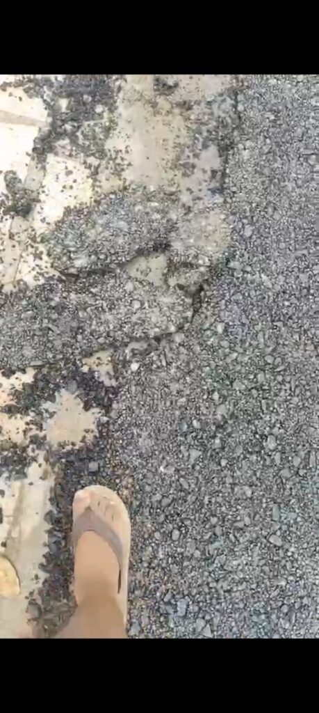 बताया गया है कि सड़क का निर्माण स्थानीय परिषद नगरपालिका द्वारा किया जा रहा है। सवाल है कि नगरपालिका इतनी गैर जिम्मेदार है कि सड़क निर्माण में इतनी घटिया किस्म की सामग्री प्रयोग की जा रही है कि पैर की उंगली लगाते ही डामर अलग हट रही है।