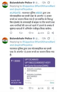 बुलंदशहर पुलिस ने काटा 13 हजार का चालान, फ़ोटो देखें
