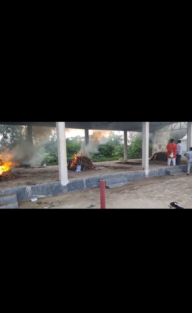 एक साथ तीनों शवों का अंतिम संस्कार किया(वीडियो)