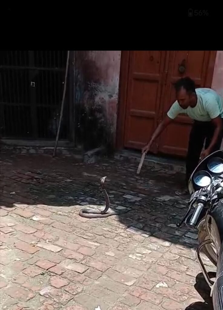 कोबरा को पकड़ते वनकर्मी(वीडियो)